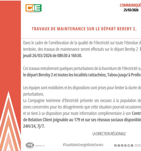 Dans la quête continue de la fourniture d’un service de qualité, la CIE est à pied d’oeuvre sur l’ensemble du...