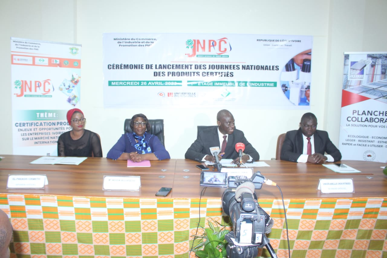 Du 07 au 09 Juin 2023 se tiendront les Journées Nationales des Produits certifiés (JNPC) à la CAISTAB au plateau. Cette annonce a été faite ce mercredi 26 Avril 2023 lors d’une conférence de presse donnée dans l’un des locaux du Ministère de l’Industrie. Le thème central de ces journées portera sur ” la certification produit: enjeux et compétitivité des entreprises Ivoiriennes sur le marché national et international”.