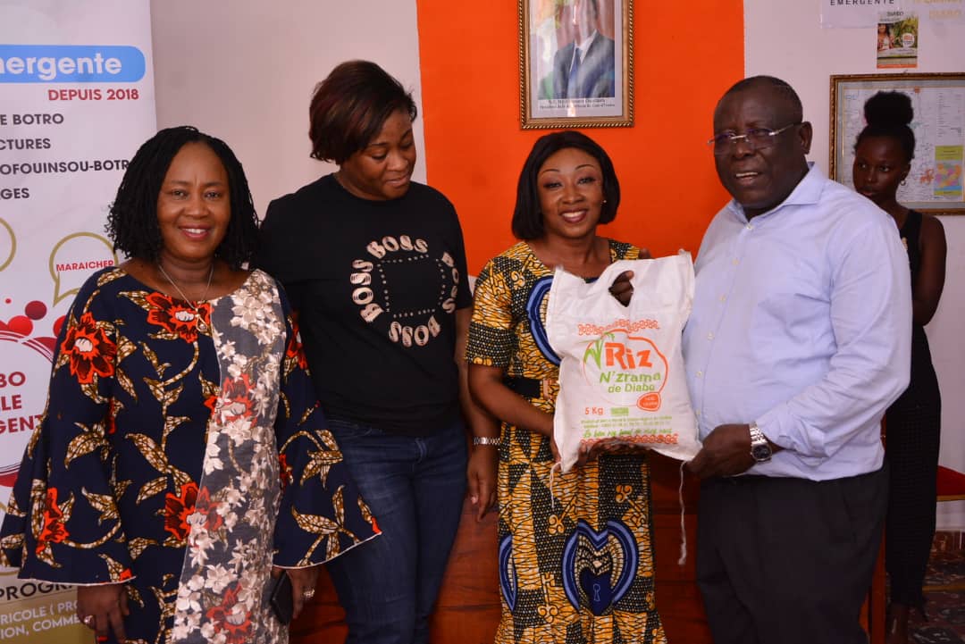 La rencontre s’est déroulée dans les locaux de l’unité de production de Riz et de manioc des femmes de Diabo.  Autour d’un programme d’autonomisation de la Femme, Rebecca Yao rassemble 3000 femmes des 172 villages département de Botro en coopératives et associations à vocation économique autour d’activités génératrices de revenus et d’activité de développement personnel comme l’alphabétisation, les Associations villageoises d’épargne et de crédit, les comités de gestion communautaires entre autres.