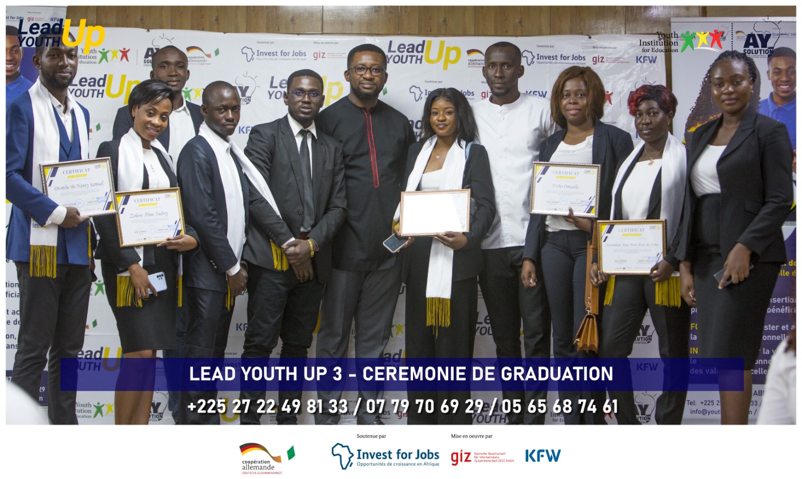 LEAD YOUTH UP est un programme de renforcement des capacités des jeunes diplômés à la recherche d’opportunités professionnelles afin de faciliter leur employabilité. Il est soutenu par INVEST FOR JOBS de la coopération allemand Giz initié et dirigé par l’organisation International de jeunesse YOUTH EDUCATION au travers de son centre AY Solutions .Le champ d’action du programme LEAD YOUTH UP est basé sur les formations Complémentaires qualifiantes (FCQ) et les programmes d’aide à l’embauche ( PAE).Le processus d’adhésion au programme ce fait en trois étapes : l’étape de l’appel à candidature par le recrutement des bénéficiaires suivants des critères bien définit puis, l’étape de la formation qui se compose de cinq module( technique de recherche d’emploi, soft kills, leadership et management de la productivité, l’anglais et l’informatique et la dernière étape qui est celle de la fin de formation.
