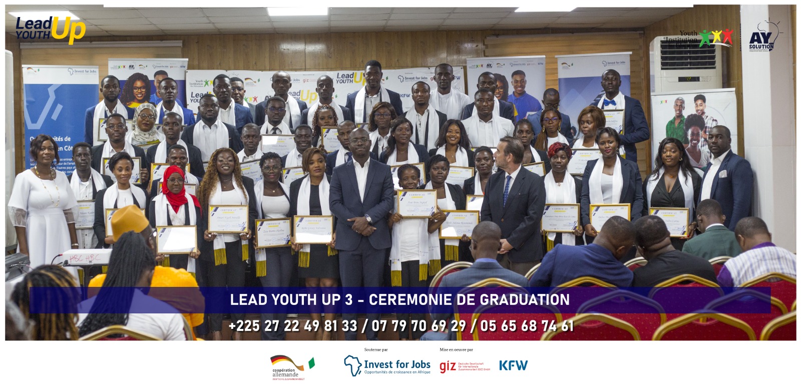 LEAD YOUTH UP est un programme de renforcement des capacités des jeunes diplômés à la recherche d’opportunités professionnelles afin de faciliter leur employabilité. Il est soutenu par INVEST FOR JOBS de la coopération allemand Giz initié et dirigé par l’organisation International de jeunesse YOUTH EDUCATION au travers de son centre AY Solutions .Le champ d’action du programme LEAD YOUTH UP est basé sur les formations Complémentaires qualifiantes (FCQ) et les programmes d’aide à l’embauche ( PAE).Le processus d’adhésion au programme ce fait en trois étapes : l’étape de l’appel à candidature par le recrutement des bénéficiaires suivants des critères bien définit puis, l’étape de la formation qui se compose de cinq module( technique de recherche d’emploi, soft kills, leadership et management de la productivité, l’anglais et l’informatique et la dernière étape qui est celle de la fin de formation.