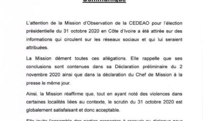 Ivoiriennes et Ivoiriens C’est avec une grande déception que nous avons vécu, dans la nuit du lundi 02 Novembre 2020 aux environs de 22h20, une attaque...