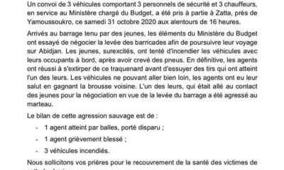 Mes chers compatriotes Ce samedi 31 octobre 2020, devrait se tenir l’élection du président de la République de la Côte d’Ivoire. Face à l’entêtement du Chef...