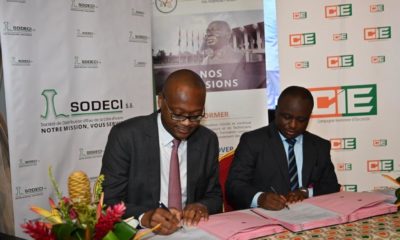 Le directeur général de la CIE et de la Sodeci, Ahmadou Bakayoko et le directeur général de l’Institut national polytechnique Félix Houphouët-Boigny (INPHB), Dr...