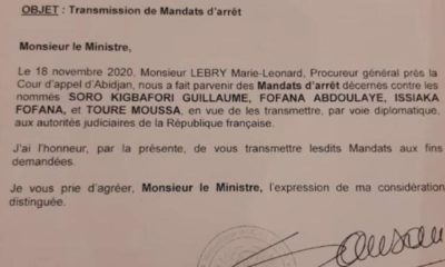 COMMUNIQUE DU PROCUREUR DE LA REPUBLIQUE D’ABIDJAN Le samedi 31 octobre 2020, un convoi de trois véhicules à bord desquels se trouvaient trois chauffeurs et trois...