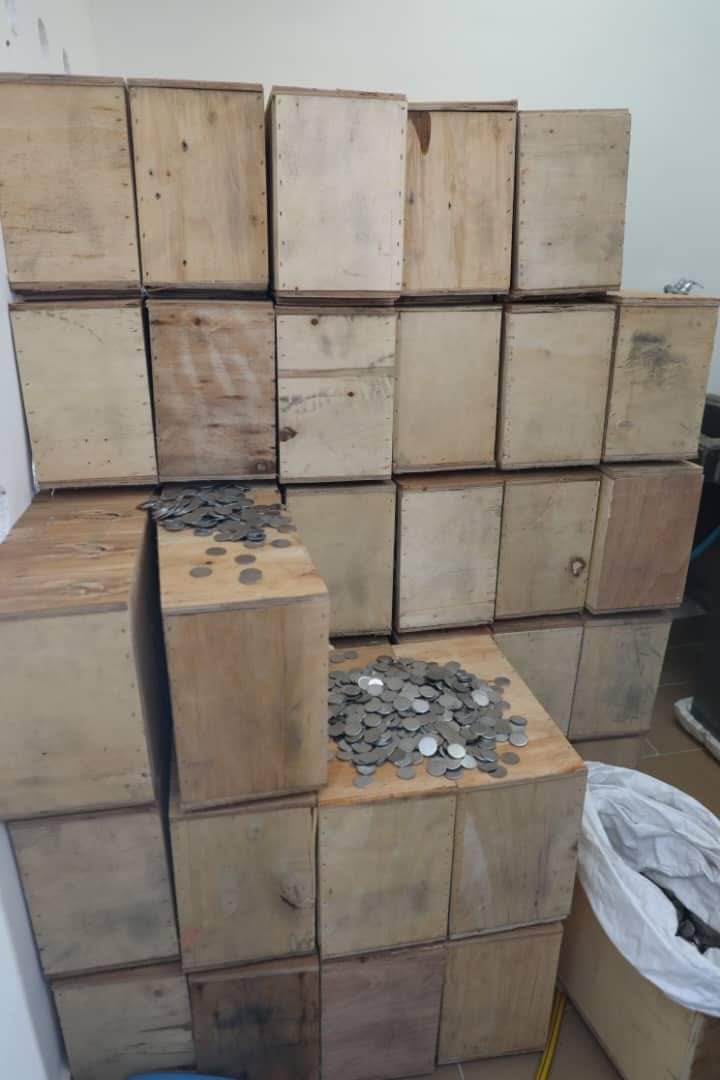 Une machine de marquage de pièces de monnaie de cent francs CFA, une machine d’entretien, un bac de lavage de pèces, 100 caisses pleines et un million de spécimens non encore marqués, ont été saisis par les gendarmes, en plus de 29 caisses déjà utilisées ainsi que huit sacs de céramique.
