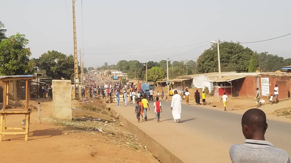La voie principale du quartier a été parsemée de bancs, pneus, tables-bancs, empêchant toute circulation et obligeant les véhicules à se détourner sur la voie de la boulangerie et de la pharmacie de la zone.
