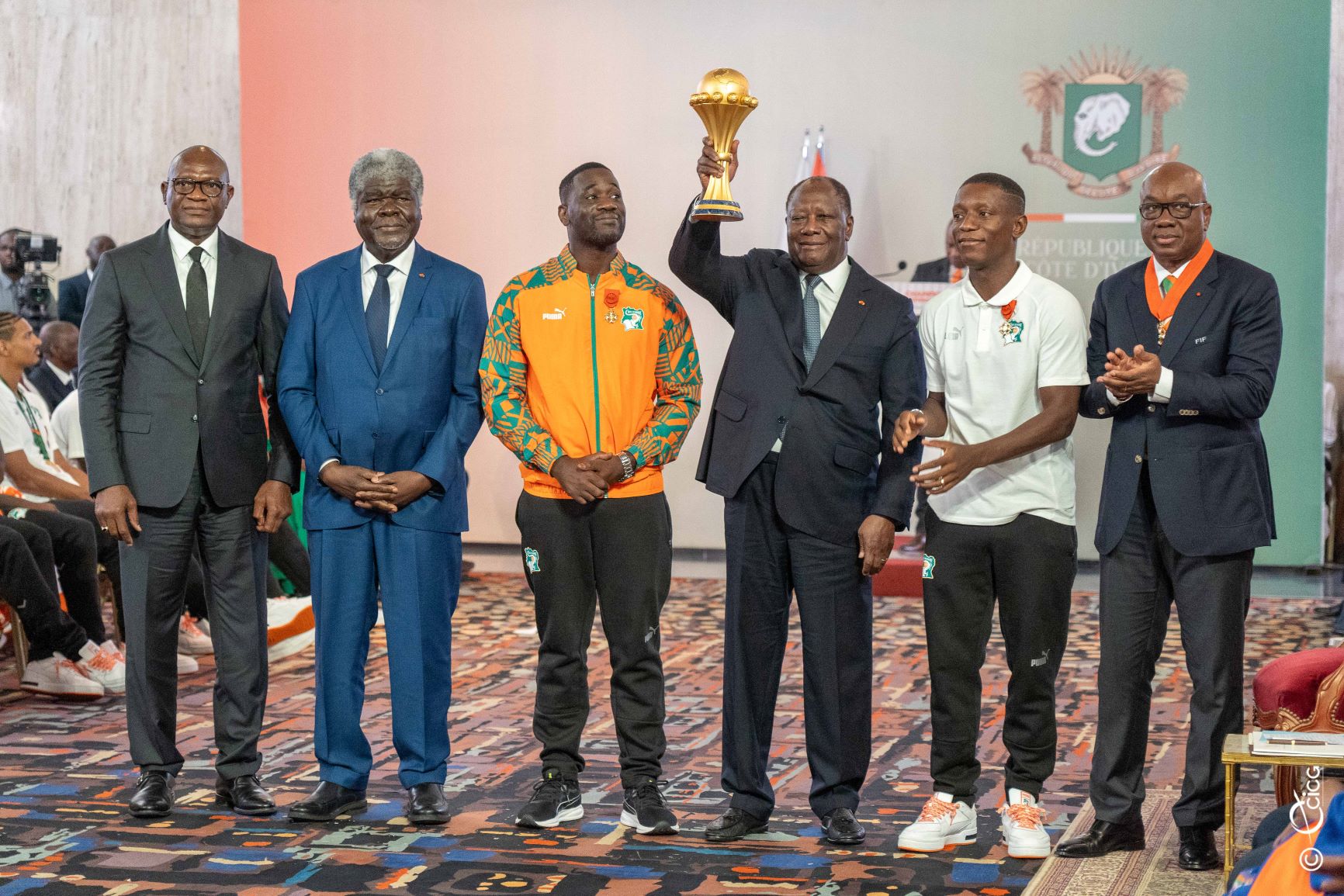 Le président de la République, Alassane Ouattara a reçu l’équipe nationale de football et le staff technique après le sacre du dimanche 11 février. La Côte d’Ivoire a succédé au Sénégal sur le toit de l’Afrique. Après le sacre, la reconnaissance de la Nation avec à sa tête le président de la République Alassane Ouattara qui a recommandé aux Ivoiriens de cultiver la solidarité et l’union qui ont été à la base de la victoire des Eléphants. Ci-dessous son discours intégral.