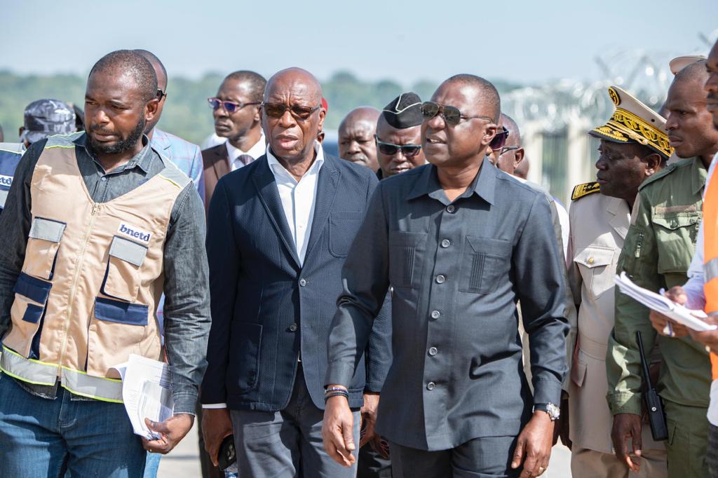 Après la visite des travaux ce dimanche 5 novembre 2023 à Korhogo, Amadou Koné s’est félicité des avancées des travaux non sans inviter les entreprises à livrer les travaux fin de ce mois. « Nous sommes ici pour faire le point avec toutes les entreprises qui travaillent sur l’aéroport de Korhogo également de San Pedro pour faire avancer donc les choses. Je suis heureux que la piste est ouverte. Hier nuit, j’ai pu visiter le balisage lumineux et me suis rendu compte que ce dernier est terminé à 98%. Ce qui signifie que les avions peuvent atterrir de nuit comme de jour désormais ici à Korhogo. On a aussi le système de navigation ILS entièrement installé. Je suis très heureux pour cela. Pour ce qui est des travaux du tarmac où les avions se posent, tout est achevé. Nous pouvons par conséquent aujourd’hui accueillir 5 ou 6 avions en même temps alors que par le passé, on ne pouvait en accueillir que 2 , ce qui est une très bonne chose. En ce qui concerne l’aérogare, les travaux sont achevés à plus de 95%. Je note aussi qu’on a pu achever totalement la clôture de l’aéroport. Tout comme l’éclairage public qu’on souhaite renforcer au niveau des parkings pour une meilleure prise en charge des vols de nuit. Relativement à l’alimentation en eau ici, il faut savoir que nous avions un petit hangar par le passé pour lequel il n’y avait pas de réseau Sodeci. C’était un petit forage. Aujourd’hui, nous avons pu obtenir que l’eau soit tirée de Korhogo jusqu’à l’aéroport pour approvisionnement avec le réseau d’eau potable. A ce niveau , le travail avance bien. D’ici la fin du mois, nous pourrons avoir ce hangar approvisionné en eau potable” a assuré le ministre des Transports.