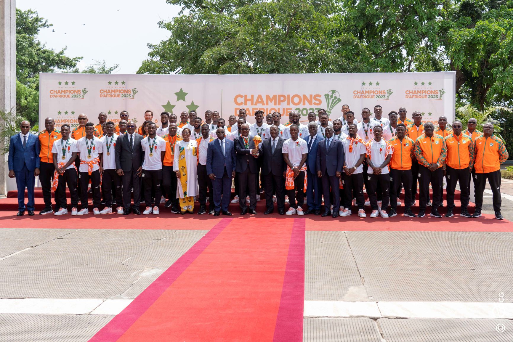 Le commando d’Emerse Fae ainsi que toute son équipe technique qui a mis la Côte d’Ivoire au sommet de l’Afrique a été élevé au titre de Chevalier de l’Ordre National ce 13 février 2024 au palais présidentiel.