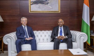 Bruno Lemaire arrivé à Abidjan dans la soirée de dimanche a procédé avec le premier ministre Patrick Achi et le ministre ivoirien des Transports Amadou Koné...