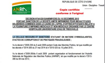 L’Autorité nationale de régulation des marchés publics (ARNMP) qui a pour crédo d’action « Agir ensemble pour la transparence et l’équité dans les marchés publics » a rendu...