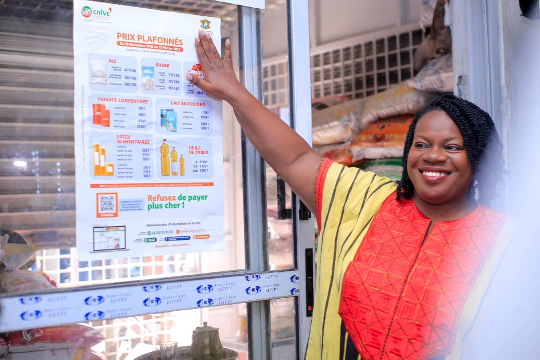 L’opération nationale d’affichage dans les boutiques et supérettes des prix plafonnés de certains produits de grande consommation a été officiellement lancée par la Secrétaire exécutive du Conseil national de lutte contre la vie chère (CNLVC), Dr Ranie-Didice Bah-Koné, le mercredi 14 décembre 2022 à Abidjan-Yopougon.