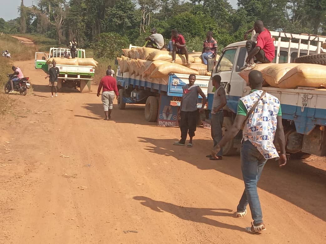 Ces sacs au nombre de 110 ont été mis à la disposition de Diakité Zoumana, représentant le conseil café-cacao de Yorodougou et convoyés sous bonne escorte à Yorodougou.