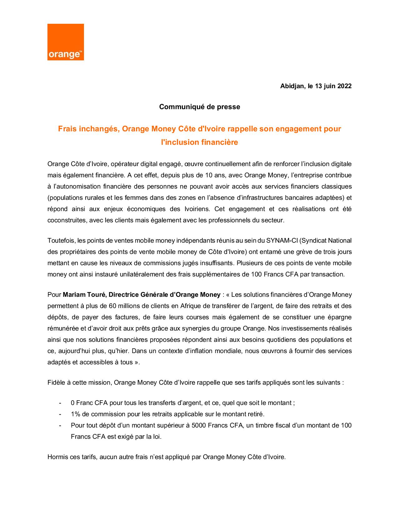 Actualité Côte d’Ivoire: Transfert mobile/ Orange confirme les frais en vigueur Publié 4 ans le 14 juin 2022 Par Redaction Share Tweet Tags:Côte d'Ivoirefrais en vigueurOrange confirmeTransfert mobile A lire aussi programme COCOAPERATION : Des résultats encourageants et une détermination commune à poursuivre le développement Assemblée nationale- Assalé Tiémoko veut plus de retransmission des activités parlementaires [Réaction] Politique- Députés Indépendants au RHDP, non…Nabil Ballo tente l’approche avec pour avocat Kandia Camara DERNIERES INFO Xiaomi renforce son leadership sur le segment milieu de gamme et célèbre le lancement du REDMI Note 15 en Côte d’Ivoire 24 janvier 2026 Transport aérien- Air Côte d’Ivoire accroît ses vols vers Paris et facilite le voyage entre Paris et Abidjan 22 janvier 2026 programme COCOAPERATION : Des résultats encourageants et une détermination commune à poursuivre le développement 20 janvier 2026 Assemblée nationale- Assalé Tiémoko veut plus de retransmission des activités parlementaires [Réaction] 17 janvier 2026 Affaire 541 ha d’Akoupé-Zeudji ׀ Touré Ahmed Bouah et Amon Amon Athanas : Une confrontation loin de prendre fin 16 janvier 2026 NOS PARTENAIRESLAURORE’ TAGSAbidjan (70) Affi N'guessan (125) Afrique (305) Ahmadou BAKAYOKO (72) Alassane Ouattara (810) Amadou Coulibaly (83) Amadou Koné (421) Angleterre (83) Bouaké (303) Burkina Faso (88) CEDEAO (111) CIE (136) Conseil des ministres (84) Covid-19 (150) Culture (71) Côte d'Ivoire (4638) Duekoue (83) Football (176) FPI (119) France (245) Gendarmerie Nationale (80) Guillaume Soro (125) Hamed Bakayoko (74) Henri Konan Bédié (148) justice (97) Laurent Gbagbo (223) Mali (134) Ministère de la Santé (82) ministère des Transports (228) ok (1971) Patrick Achi (244) PDCI-RDA (234) Pierre Dimba (76) police nationale (218) Politique (113) PPA-CI (118) RHDP (500) Santé (125) SODECI (103) Sport (172) Sécurité (120) Sécurité routière (77) top (84) Yamoussoukro (112) Éducation nationale (95)