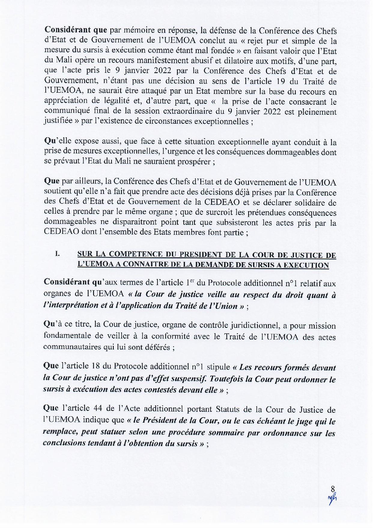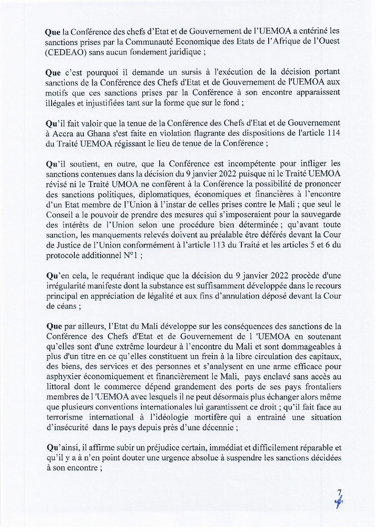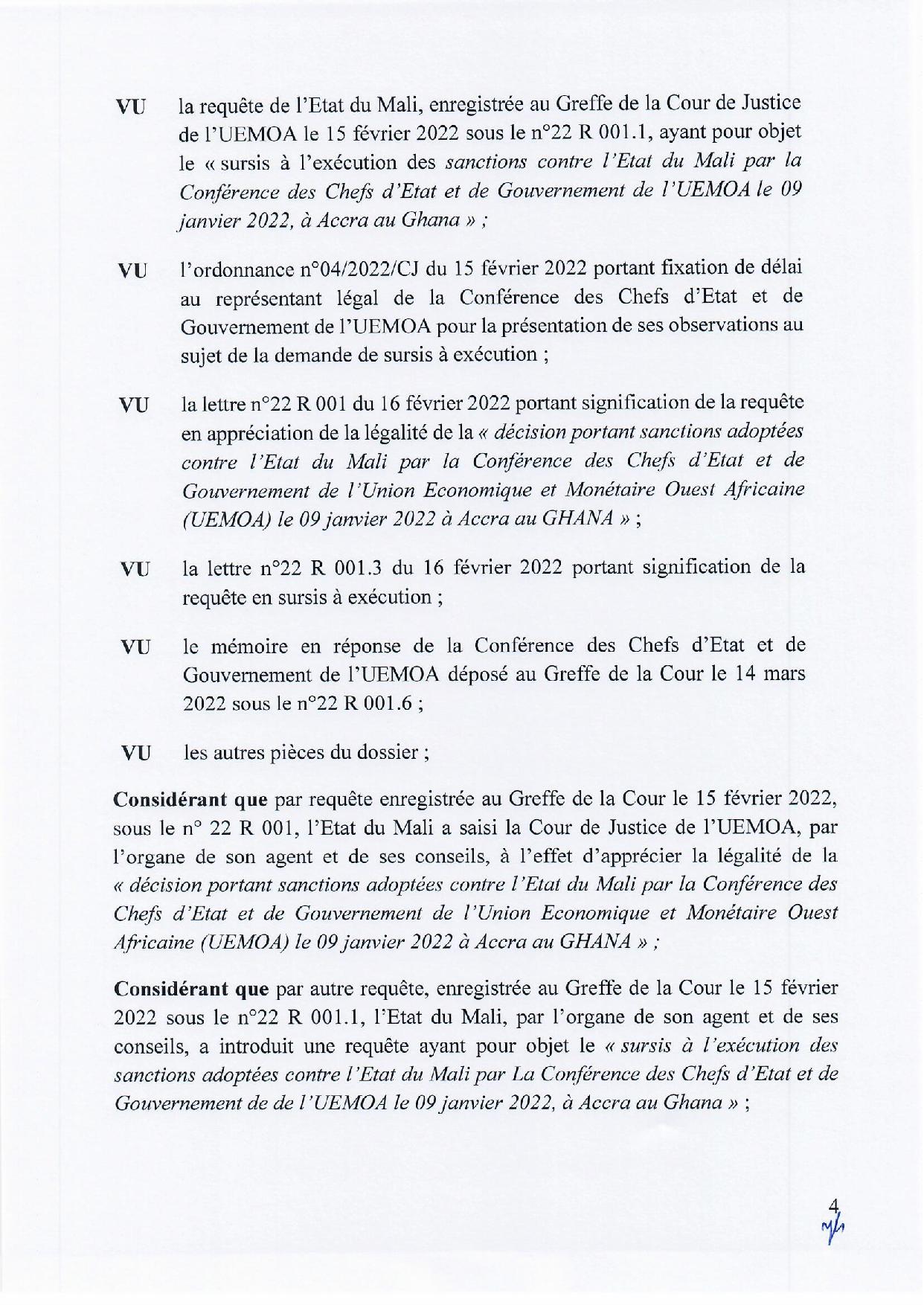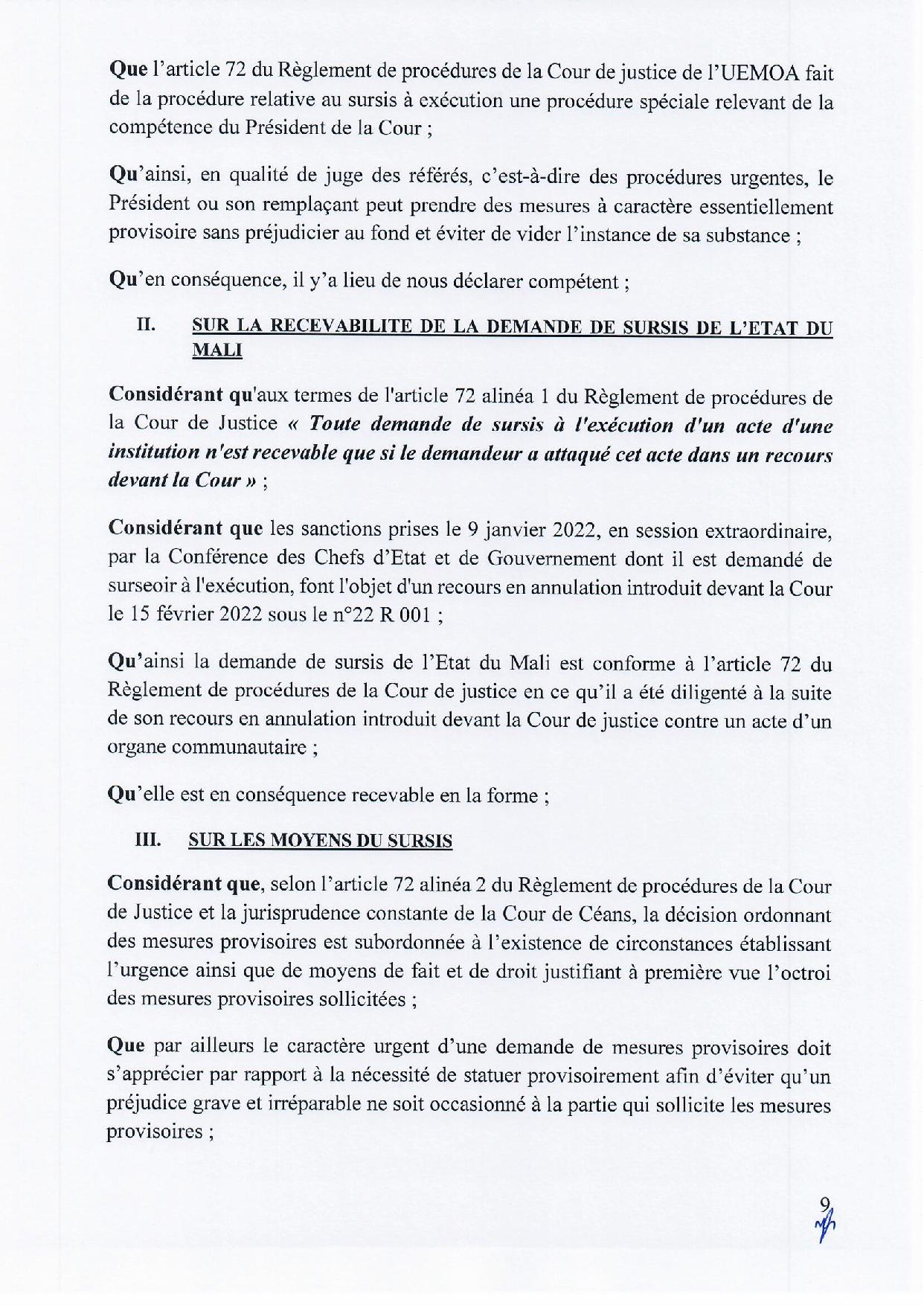 Crise malienne : la Cour de Justice de l’UEMOA prononce un sursis de l’exécution des sanctions financières, voici l’ordonnance