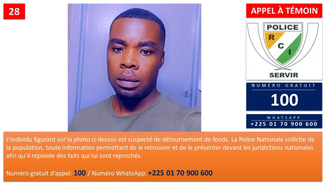 La Police Nationale sollicite de la population, toute information permettant de le retrouver et de le présenter devant les juridictions nationales afin qu’il réponde des faits qui lui sont reprochés.