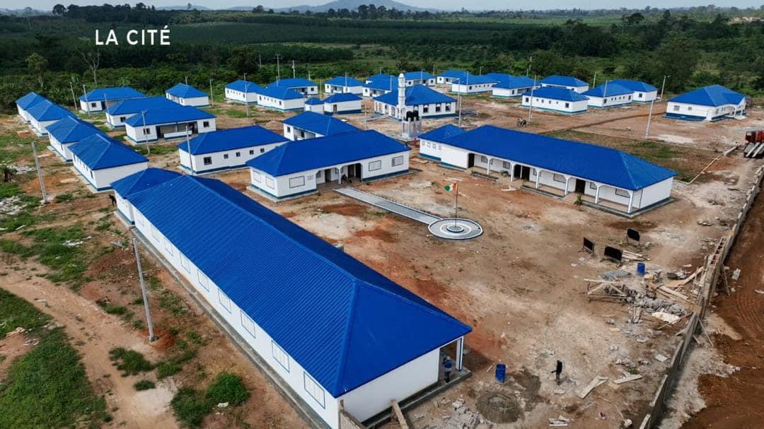 Il s’agit d’une cité entièrement équipée de 50 villas de 3 pièces, connectées aux compteurs CIE et SODECI chacune, une école primaire publique, une maison et bureau du Directeur de l’école un centre de santé équipé (dispensaire et maternité), un marché ainsi que des airs de jeu pour enfants.