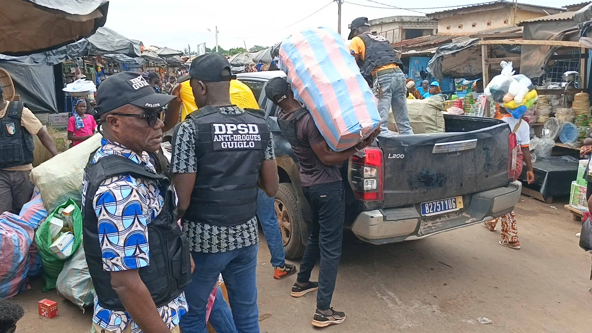 Cette saisie a eu lieu dans le grand marché de Duékoué et est, selon le commissaire de police, responsable de la police antidrogues dans le Guémon et dans le Cavally (DPSD), Thomas Gbossouna, le résultat d’un processus qui a commencé depuis le 20 février 2026 en synergie avec la jeunesse de Duékoué et les autres forces de défense et de sécurité.