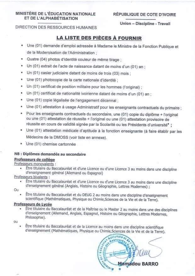 Actualité Education nationale | Un recrutement d’enseignants contractuels de collège et lycée lancé Publié 5 ans le 28 juillet 2021 Par Redaction Share Tweet Tags:collège et lycéeÉducation nationaleEducation nationale et de l'Alphabétisationenseignants contractuels A lire aussi Education nationale- Koffi N’guessan et Saliou Touré s’accordent sur la formation de 1400 enseignants de mathématiques Destruction- La mairie de Port-Bouët clarifie la situation d’un établissement scolaire et annonce un marché de gros [Communiqué] Rentrée scolaire : Voici le découpage de l’année 2025-2026 DERNIERES INFO Chefferie traditionnelle à Yamoussoukro : Kouamé Brou Aubertel, intronisé chef du village de Nanan, dans l’unité retrouvée 13 mars 2026 Région de la Nawa – Extraction d’or : Parfait Kouamé Kouadio (D.R des mines et de la géologie) explique tout sur l’orpaillage 13 mars 2026 Yamoussoukro – Religion/ Pour un nouveau départ : Près de 10 000 catholiques en pèlerinage à Morofé 13 mars 2026 Dabakala- Un vigile-mototaxiste présumé violeur d’une jeune fille devant le Tribunal grâce à l’ONG Nouvelle Vision 12 mars 2026 Côte d’Ivoire – JIF 2026 à Yamoussoukro : L’Ufcoya privilégie l’action à la fête 10 mars 2026 NOS PARTENAIRESLAURORE’ TAGSAbidjan (74) Affi N'guessan (125) Afrique (306) Ahmadou BAKAYOKO (72) Alassane Ouattara (813) Amadou Coulibaly (84) Amadou Koné (430) Angleterre (83) Bouaké (306) Burkina Faso (88) CEDEAO (114) CIE (145) Conseil des ministres (84) Covid-19 (151) Culture (71) Côte d'Ivoire (4684) Duekoue (84) Football (177) FPI (119) France (245) Gendarmerie Nationale (80) Guillaume Soro (125) Hamed Bakayoko (74) Henri Konan Bédié (148) justice (98) Laurent Gbagbo (223) Mali (134) Ministère de la Santé (83) ministère des Transports (228) ok (2053) Patrick Achi (244) PDCI-RDA (241) Pierre Dimba (76) police nationale (218) Politique (120) PPA-CI (118) RHDP (509) Santé (128) SODECI (109) Sport (172) Sécurité (120) Sécurité routière (83) top (84) Yamoussoukro (124) Éducation nationale (96)
