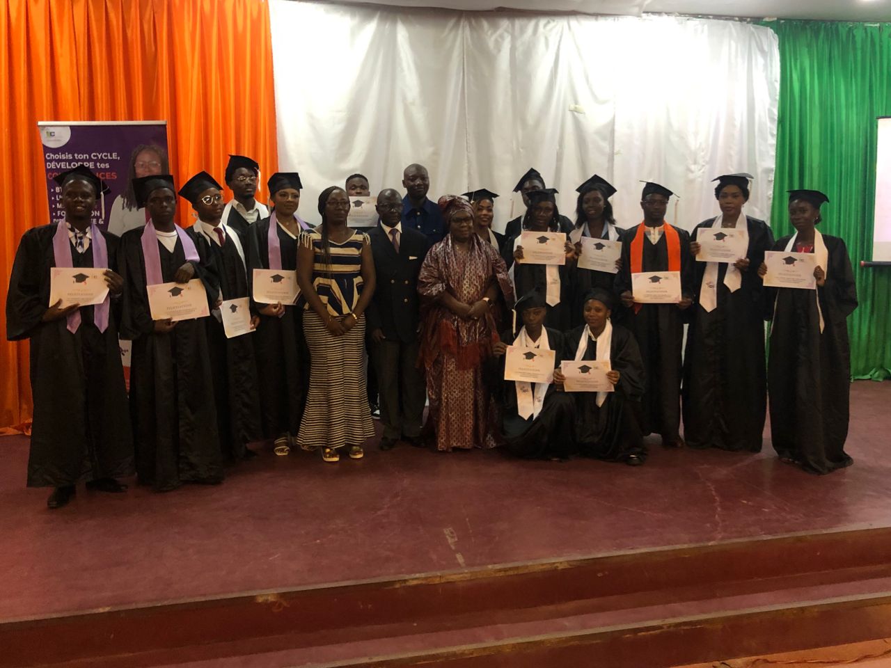 « L’objectif de ce jour est de récompenser notre première promotion dans le cadre de notre programme de bourse Hadja Afsetou Sonan lancé en 2021. Aujourd’hui c’est l’aboutissement d’un parcours pour ces étudiants qui ont accepté de venir à notre école et surtout d’accepter notre méthode innovante qui est l’alternance entre les stages en entreprise et les cours à l’école », selon Adama Junior Sylla, Directeur Général de cet établissement.