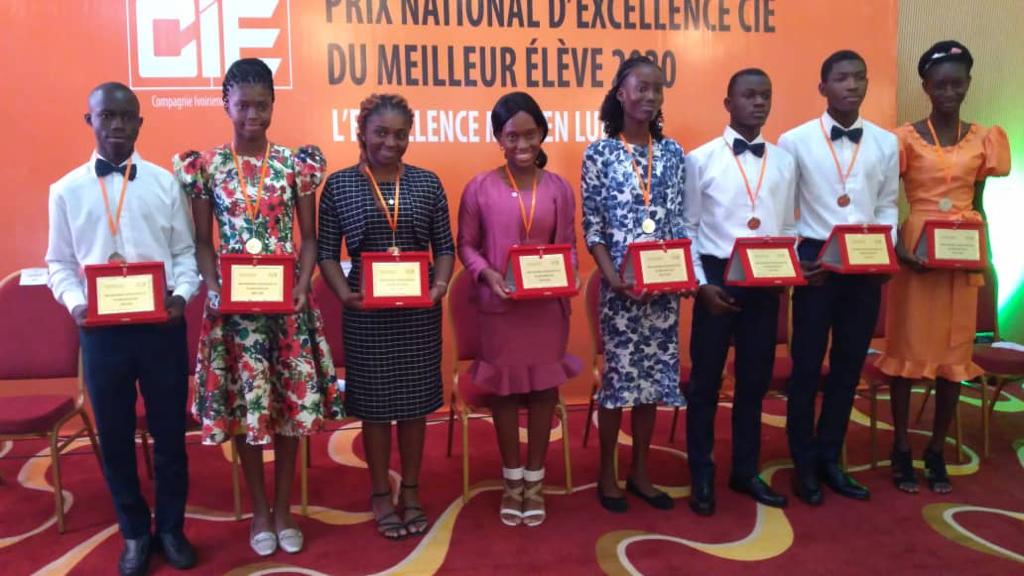 La CIE (Compagnie Ivoirienne d’Electricité) a primé les 9 meilleurs élèves et écoliers des examens de fin d’année, session 2020 en Côte d’Ivoire, lors de la 6e édition du ‘’Prix national d’excellence CIE du meilleur élève 2020’’, samedi 19 décembre 2020, dans la commune de Cocody.