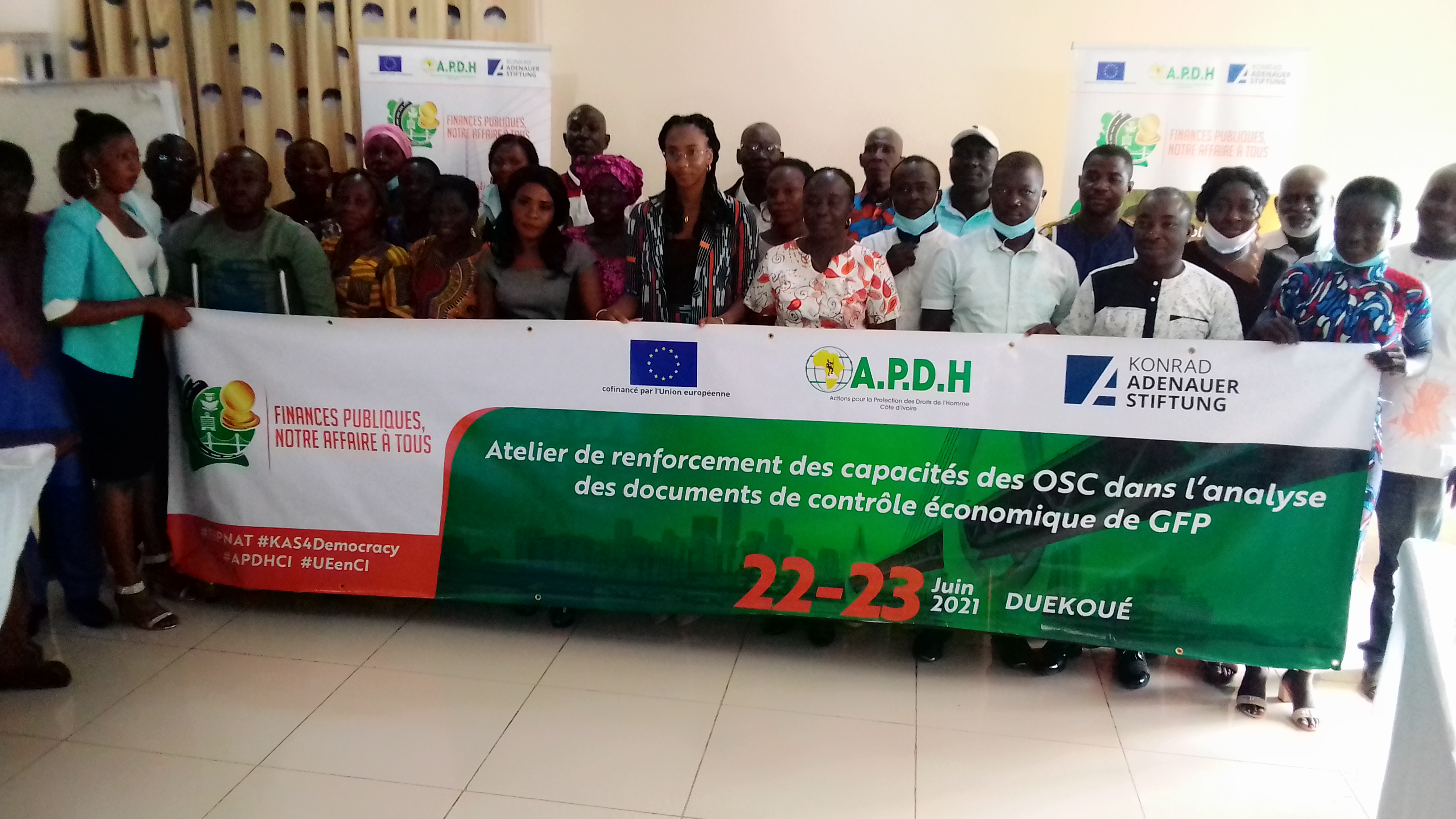 Ce deuxième atelier, avait pour objectif d’outiller 12 organisations de la société civile du Guémon, afin de leur permettre d’avoir un droit de regard sur les finances publiques.