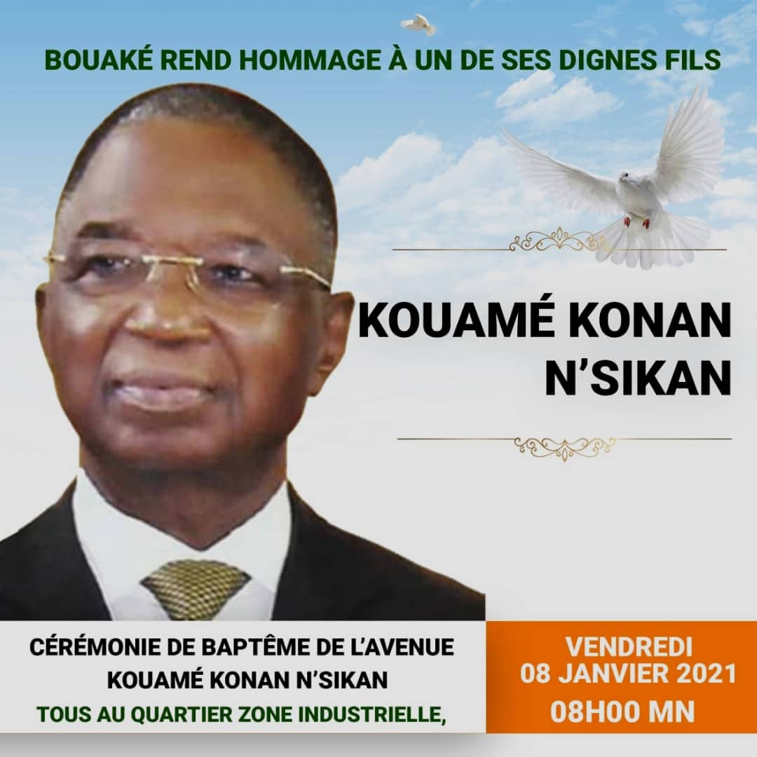 « Chers amis de la presse, nous sommes très heureux de vous recevoir ce jour plus que d’habitude, je suis tentée de dire, dans les locaux de la Mairie de Bouaké, la raison de cette joie manifeste est toute simple : de par la volonté du premier magistrat de notre cité, le Maire DJIBO Youssouf Nicolas, auxquels ont bien voulu s’associer d’illustres fils de la Région parmi lesquels, les Ministres Amadou KONE, Jean-Claude KOUASSI, Sidi Tiémoko TOURE et le DG ASSAHORE Konan Jacques, il est prévu que Bouaké rende hommage le vendredi 8 janvier prochain, à feu le Doyen Kouamé Konan N’SIKAN » a-t-elle indiqué lundi 4 janvier 2021.