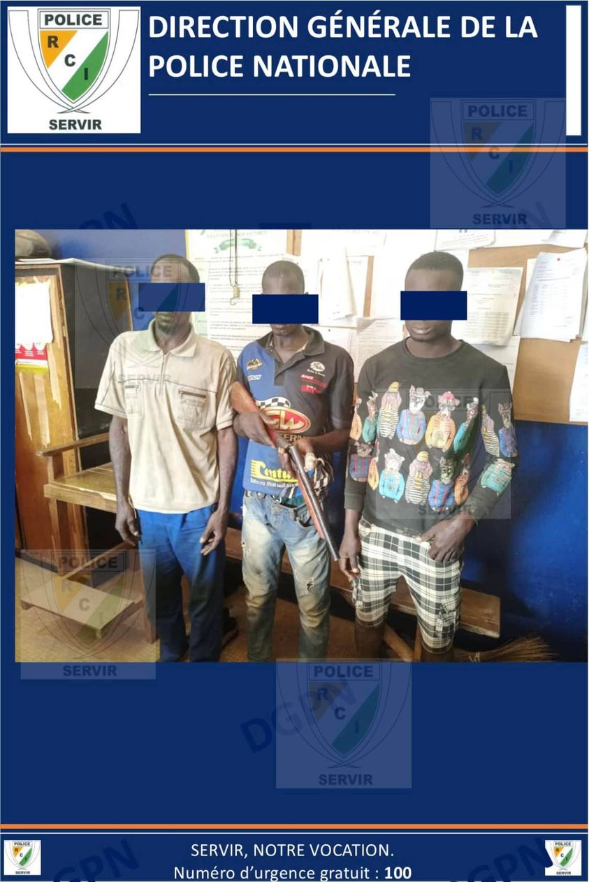 “Dans le cadre de la lutte contre la criminalité, le service de recherche de la Police judiciaire de Yamoussoukro a mis fin à l’activité criminelle d’un gang qui sévissait dans cette localité” indique la Police Nationale.