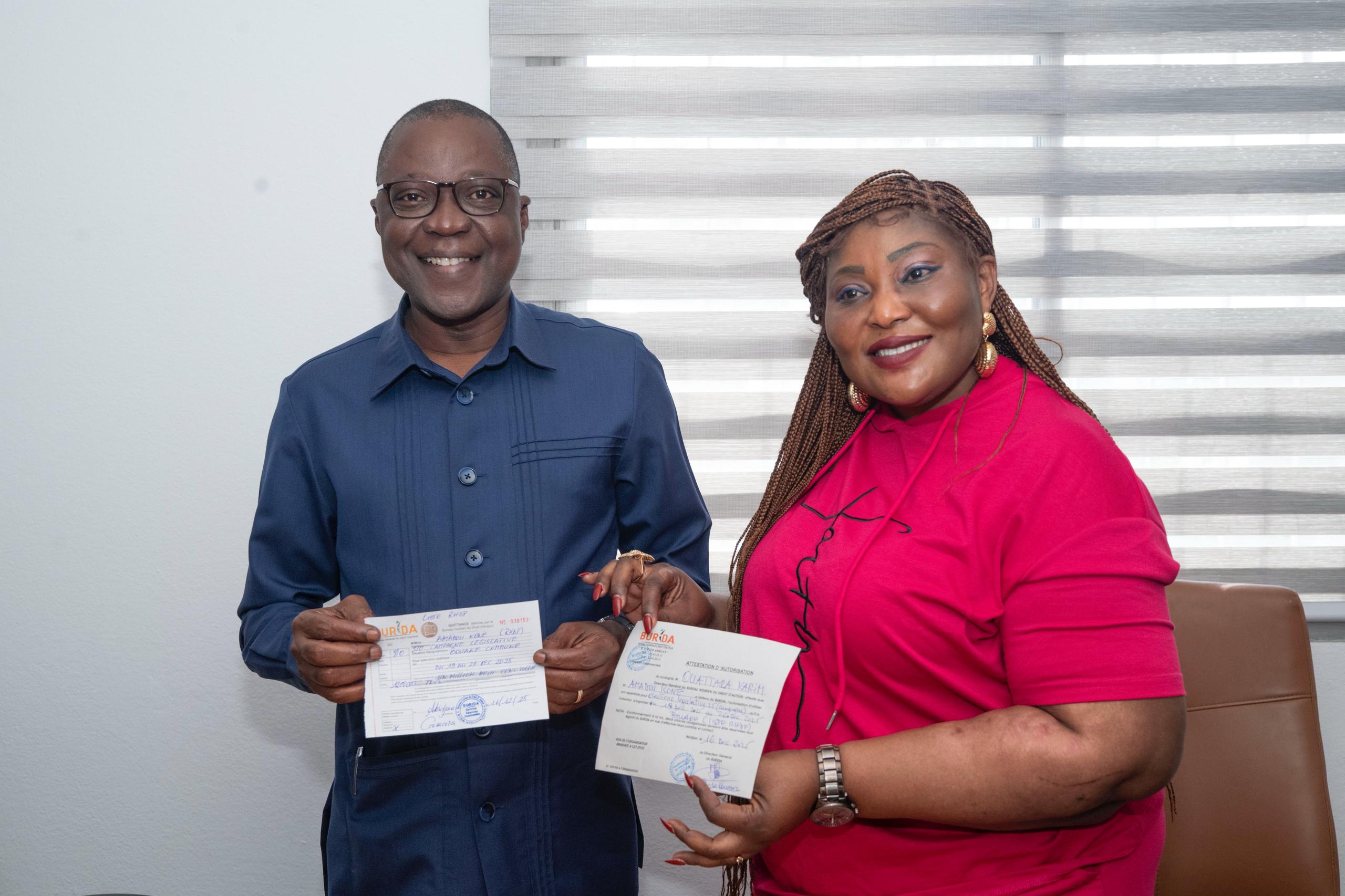 Candidat aux élections législatives de 2025 dans la circonscription électorale N°060 de Bouaké ville, Amadou Koné s’est acquitté, ce 16 décembre 2025, des droits d’auteur relatifs à l’utilisation des œuvres artistiques durant la campagne électorale.
