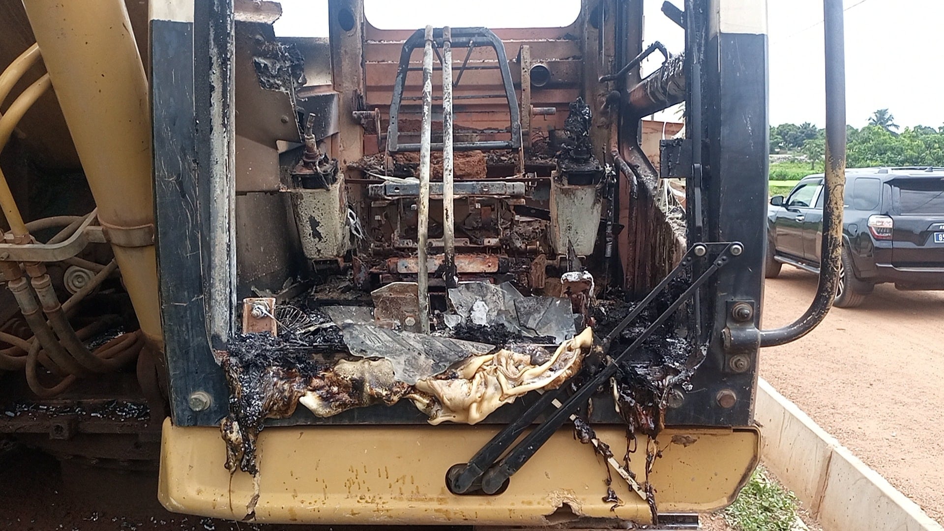 Les travaux avancent bien jusqu’en 2022 et les travaux sont presqu’achevés. Contre toute attente, dans la nuit du samedi 7 au dimanche 8 mai 2022, des individus non encore identifiés ont mis le feu à un des engins affectés sur le chantier de bitumage de l’avenue Yebouet Lazare de Diabo.