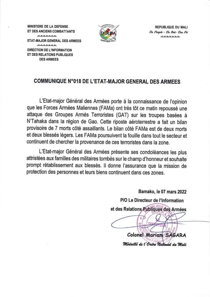 Mali-L’Etat-major des FaMa dit avoir repoussé une attaque terroriste, voici le bilan