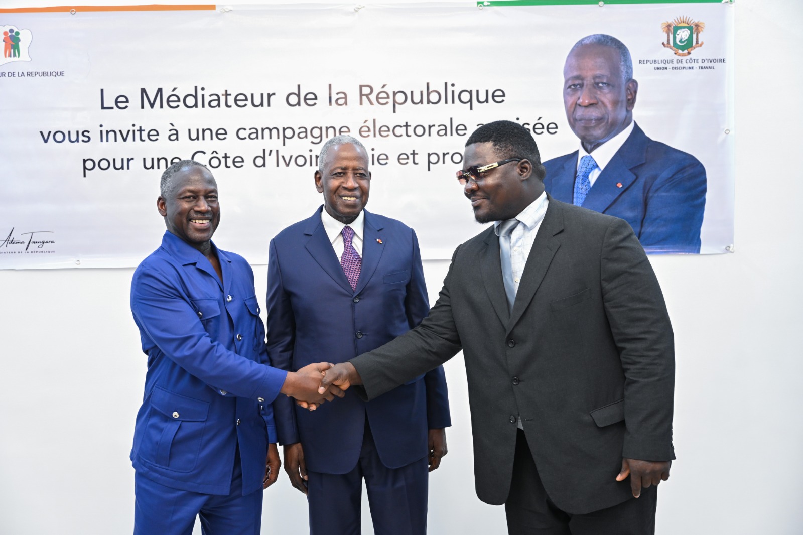 “Nous sommes adversaires mais pas des ennemis, je m’engage à faire une élection apaisée et civilisée. 𝗡𝗼𝘂𝘀 𝗮𝗶𝗺𝗼𝗻𝘀 𝘁𝗼𝘂𝘀 𝗬opougon”, a-t-il posté sur Facebook à l’issue de la cérémonie initiée par le Médiateur de la République, Adama Toungara.