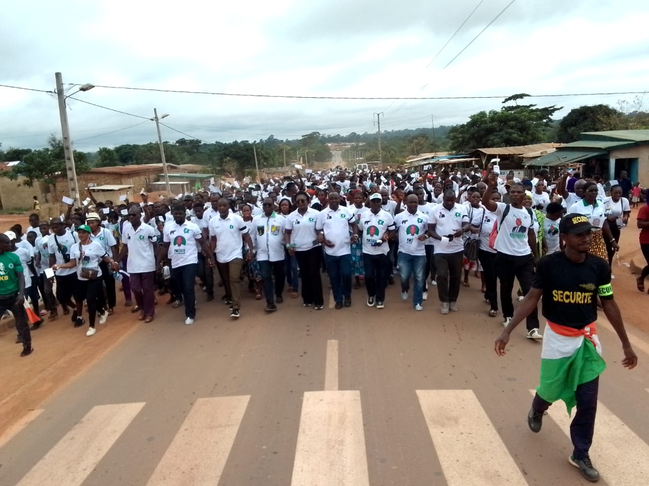 C’est par une marche blanche pour la paix et la cohésion sociale que Dr Raphaël Ya Komenan a démarré les hostilités de la campagne municipale. Tee-shirt blanc marqués des initiales et logo du Pdci-Rda. Raphaël Ya a parcouru cinq (5) kilomètres à pied en compagnie du Député de Ouellé, Paul Kra Konan, des militants et sympathisants du Pdci-Rda. La marche a débuté au corridor nord en passant par les quartiers Coco, passant par Bayassou pour terminer au quartier Commerce. Durant tout ce parcours, les militants et partisans ont tenu à marquer au candidat leur détermination de l’élire le samedi 2 septembre prochain.