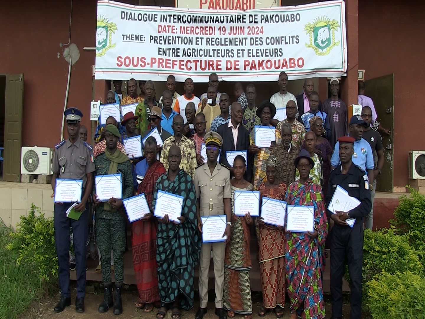 Au terme du dialogue intercommunautaire, le Sous-préfet de Pakouabo, SIGBEU Gbadé Donatien, a félicité l’ensemble des populations pour la qualité des contributions et réitéré ses remerciements pour la forte mobilisation des populations. Aussi, a-t-il exhorté les leaders communautaires, les éleveurs et agriculteurs à s’approprier les recommandations issues du présent dialogue pour la cohésion sociale et la paix dans la Sous-préfecture de Pakouabo.