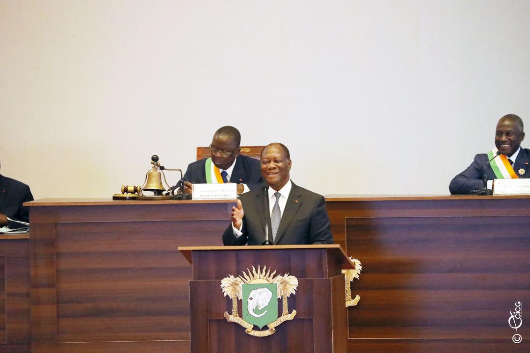 Le Président de la République, Alassane Ouattara, a félicité tous les acteurs du dialogue politique pour leur engagement pris de se départir de la violence comme mode d’accession au pouvoir, le mardi 19 avril 2022, à l’occasion de son adresse sur l’état de la nation devant le Parlement (Assemblée nationale et Sénat), réunis en congrès à Yamoussoukro.