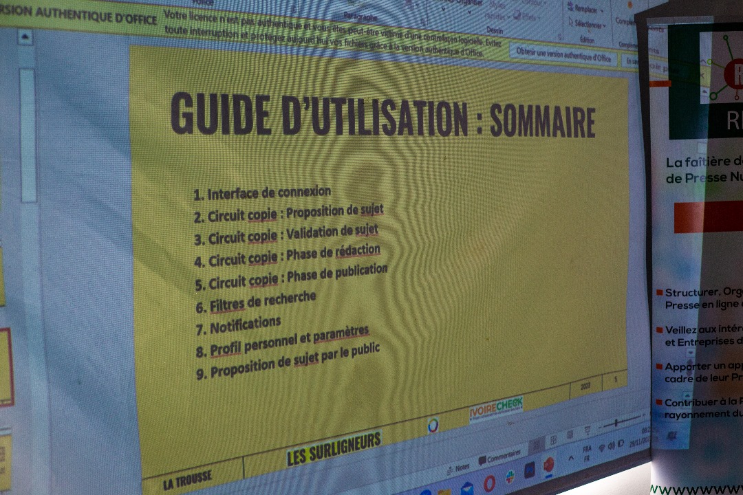 « C’est un logiciel qui permet aux fact-checkeurs de rassembler toutes leurs données. Il permet aussi au journaliste de proposer à son média ou à son responsable les sujets qu’ils souhaiterait aborder”, a expliqué le chef de projet Mamady Kebe qui a précisé que l’outil est gratuit. Par contre, les médias désireux de travailler sont priés de s’inscrire à travers un formulaire sur les sites ivoirecheck.com ou lessurligneurs.eu afin de recevoir le code source et le guide d’installation.