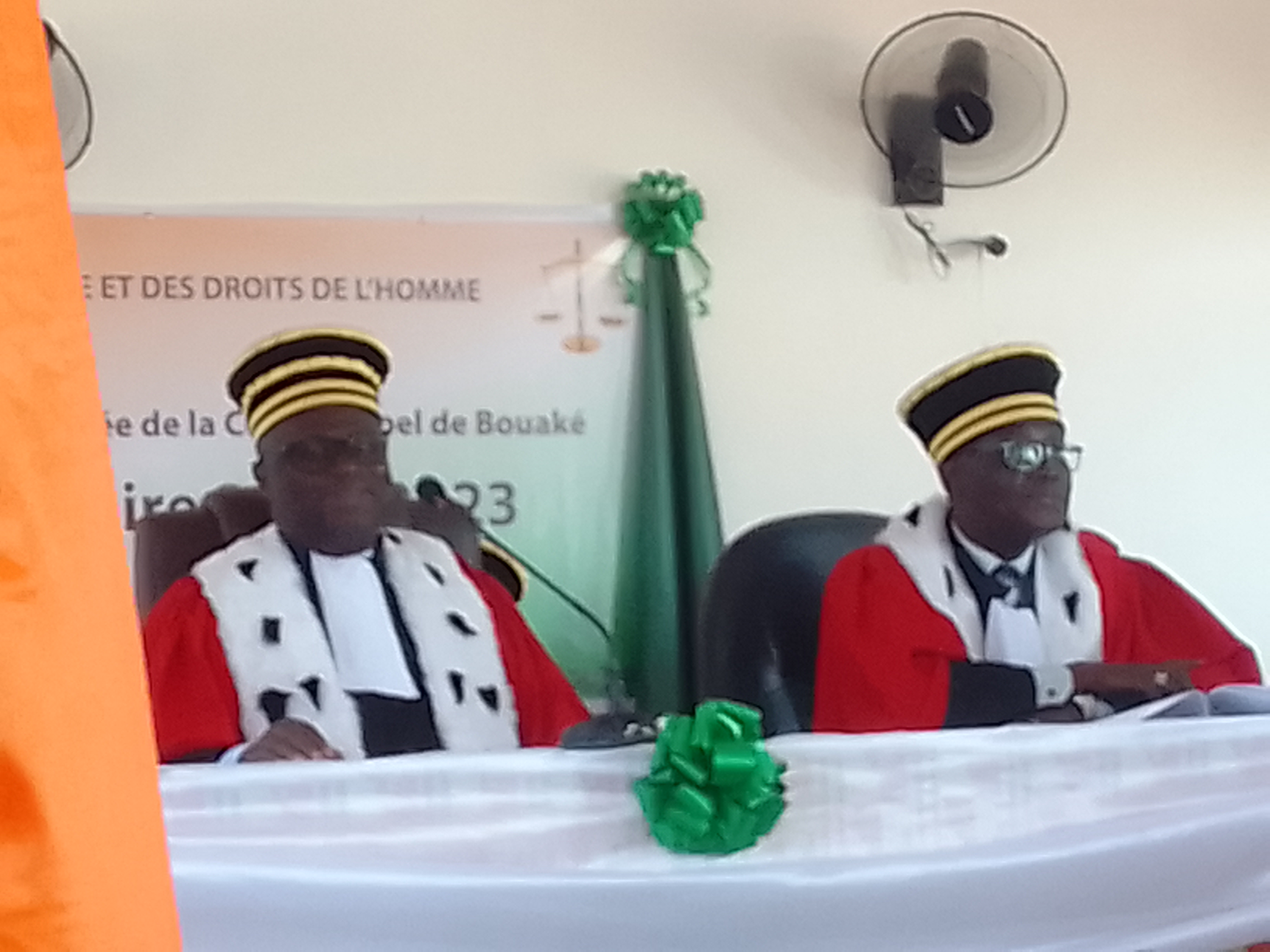 Bernard Koné a développé le thème « Rôle du Parquet dans l’exécution des décisions de justice ». Bien avant il a traduit la reconnaissance des Magistrats et des autres acteurs de l’appareil judiciaire au ministre de la Justice pour la remise de 450 toges aux magistrats et l’amélioration des conditions matérielles et logistiques. Il a annoncé le lancement prochain des travaux de construction de la Cour d’Appel de Bouaké après la construction des nouveaux locaux de la Cour d’Appel de Daloa. Il a reconnu les efforts consentis par l’Etat mais relevé « l’insuffisance de magistrats » qui accroît la charge de travail. Bernard Koné a néanmoins dit son espoir d’une amélioration du travail grâce à la prise de fonction de 5 nouveaux magistrats à la Cour d’Appel. Ce sont Kacou Tanoh, Emmanuel Boko Ognrékon, Mme Nimba N’guessan Ella Mireille, Epouse Kouassi, Saihi Bongué, Jean Baptiste Angaman. Fiéni Jean Marc qui par le prononcé de « je jure » a fait son entrée dans la grande famille de la Justice a lui rejoint le Tribunal de première instance de Bouaké. « Vous ne serez jamais riche matériellement mais vous aurez le respect de vos concitoyens » a conseillé le Procureur Général au nouveau venu. « Nous sommes prêts à vous y accompagner pour le bien-être de la magistrature, votre famille et votre région dont vous êtes un des cadres » a assuré Bernard Koné.