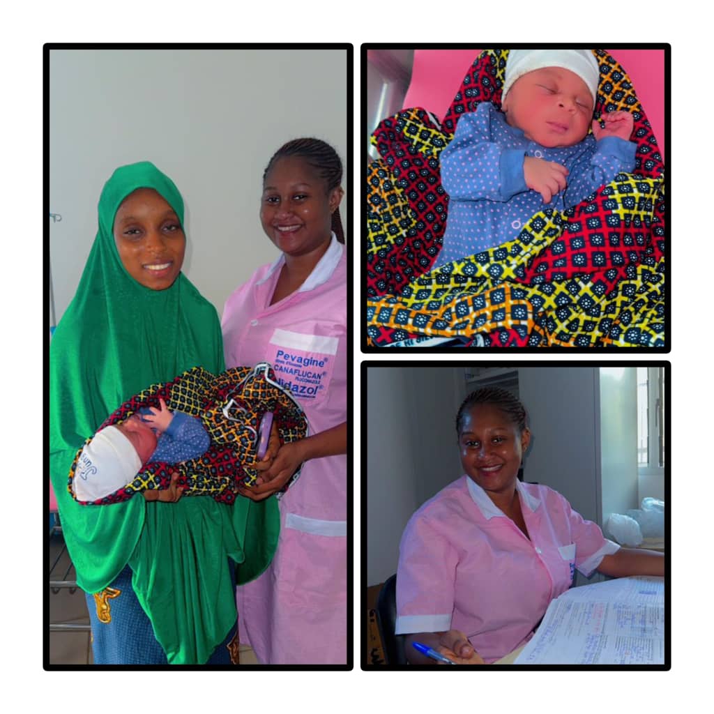 C’est obligatoirement par césarienne. J’ai donc conseillé d’aller à l’hôpital général. Vu que les contractions avaient commencé. Son mari me suppliait de les aider parce qu’il ne voulait pas de césarienne après plusieurs discussions. J’ai libéré le couple, mais comme j’ai l’habitude avec mes patients, on se parlait. Une semaine, ils sont arrivés, le monsieur me dit : “ma femme est prête. Le seigneur m’a parlé la venue au monde de notre enfant se fera dans vos mains”. J’étais anxieuse et j’essaie tant bien que mal de leur faire entendre raison. J’ai donc pris sur moi de consulter la dame (femme enceinte ayant le foeutus avec une circulaire double). J’ai constaté qu’elle était à complète et l’enfant était à la vue (prêt à naître). Elle ne pouvait plus quitter la maternité. J’ai donc préparé la salle d’accouchement. Le bébé à la naissance avait effectivement une double circulaire grâce à Dieu, c’était vraiment très long. Ce qui fait éviter à l’enfant le pire. C’était l’impossible qui devait possible. On n’a donc appelé ” le bébé miracle”
