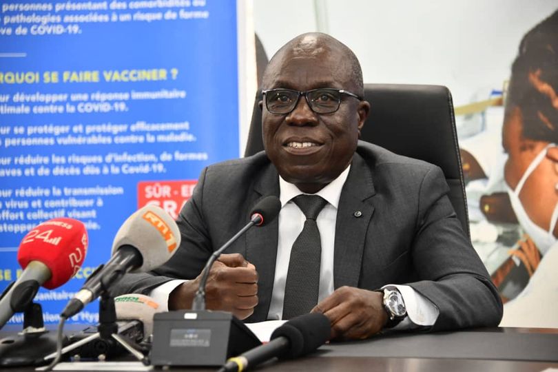 Dr Charles Koffi Aka, Directeur de Cabinet du ministre de la Santé, de la Santé, de l’hygiène publique et de la couverture maladie universelle, a animé une conférence de presse jeudi 5 août 2021 avec “pour objet d’informer l’opinion nationale et internationale sur la situation de paiement des primes au personnel du ministère de la santé, de l’hygiène publique et de la couverture maladie universelle, dans le cadre de la lutte contre la COVID-19 dans notre pays.”