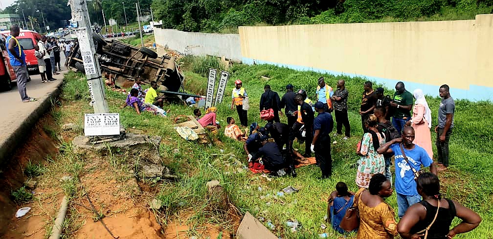 15 victimes dont des cas graves ont été recensés dans un accident de la circulation mettant en cause un véhicule de transport de personnes. L’accident a eu lieu à côté de l’Ecole de Police d’Abidjan dont le ravin a été le théâtre de cette sortie de route du “badjan” 22 places qui relie Anono à Adjamé marché gouro. Les sapeurs pompiers de l’Indénié sont intervenus pour apporter le secours nécessaire aux victimes.