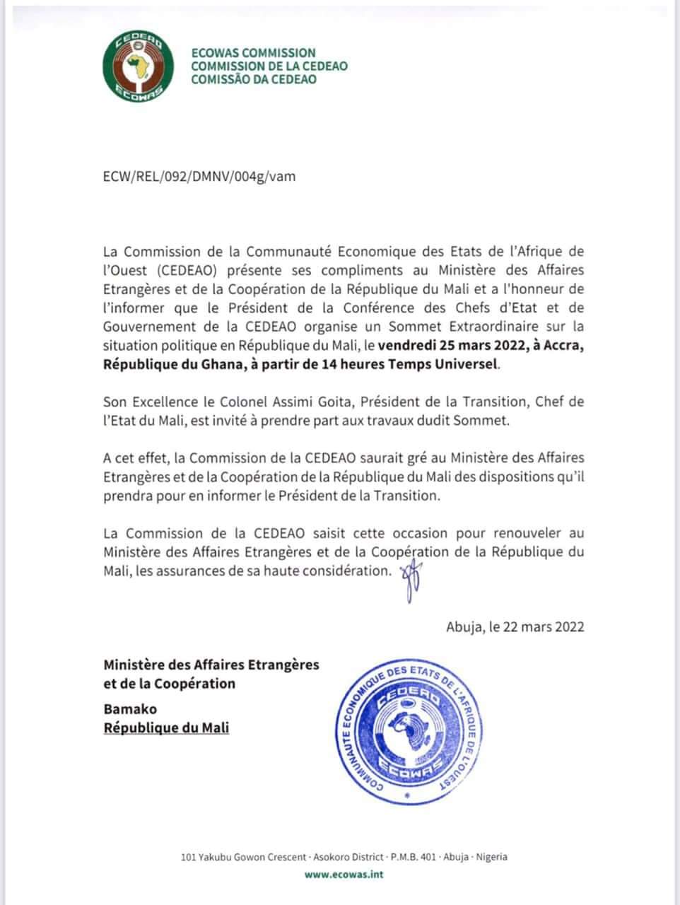 Actualité Situation politique au Mali /Assimi Goita invité à une réunion par la CEDEAO à Accra Publié 4 ans le 23 mars 2022 Par Redaction Share Tweet Tags:AccraAssimi GoïtaCEDEAOSituation politique A lire aussi Côte d’Ivoire | Législatives 2025 : Sa Majesté Abrafikoto Florence Kyeremaa pour des élections sans violence CEDEAO- Voici les grandes résolutions de la dernière session de la CEDEAO, Burkina Faso, Mali, Niger au coeur des travaux Santé- Le CRSCM-CEDEAO s’enquiert de l’expérience du CCSM Canadien pour répondre aux défis sanitaires régionaux DERNIERES INFO Xiaomi renforce son leadership sur le segment milieu de gamme et célèbre le lancement du REDMI Note 15 en Côte d’Ivoire 24 janvier 2026 Transport aérien- Air Côte d’Ivoire accroît ses vols vers Paris et facilite le voyage entre Paris et Abidjan 22 janvier 2026 programme COCOAPERATION : Des résultats encourageants et une détermination commune à poursuivre le développement 20 janvier 2026 Assemblée nationale- Assalé Tiémoko veut plus de retransmission des activités parlementaires [Réaction] 17 janvier 2026 Affaire 541 ha d’Akoupé-Zeudji ׀ Touré Ahmed Bouah et Amon Amon Athanas : Une confrontation loin de prendre fin 16 janvier 2026 NOS PARTENAIRESLAURORE’ TAGSAbidjan (70) Affi N'guessan (125) Afrique (305) Ahmadou BAKAYOKO (72) Alassane Ouattara (810) Amadou Coulibaly (83) Amadou Koné (421) Angleterre (83) Bouaké (303) Burkina Faso (88) CEDEAO (111) CIE (136) Conseil des ministres (84) Covid-19 (150) Culture (71) Côte d'Ivoire (4638) Duekoue (83) Football (176) FPI (119) France (245) Gendarmerie Nationale (80) Guillaume Soro (125) Hamed Bakayoko (74) Henri Konan Bédié (148) justice (97) Laurent Gbagbo (223) Mali (134) Ministère de la Santé (82) ministère des Transports (228) ok (1971) Patrick Achi (244) PDCI-RDA (234) Pierre Dimba (76) police nationale (218) Politique (113) PPA-CI (118) RHDP (500) Santé (125) SODECI (103) Sport (172) Sécurité (120) Sécurité routière (77) top (84) Yamoussoukro (112) Éducation nationale (95)