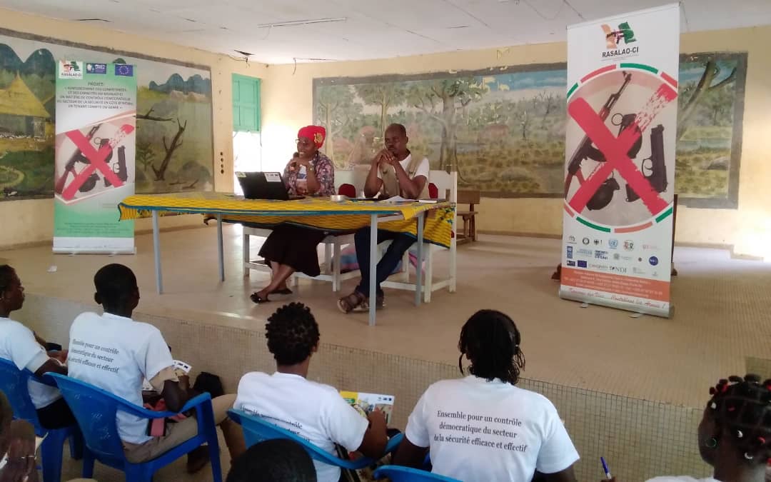 Angèle Ouraga epse Zomi, chargée de projet au RASALAO-CI estime que << la tenue de ces activités est parti du constat que de nombreux membres d’ONG n’avaient pas de formation en matière de contrôle démocratique du secteur de la sécurité. Nous les avons formés et entrepris une journée porte à porte, suivi de séance sensibilisation dans des établissements scolaires sur les dangers liés à l’utilisation illégale des armes notamment des armes de petit calibre, des armes blanches et des armes par destination, à travers des conférences, pour lutter contre la violence en milieu scolaire.”